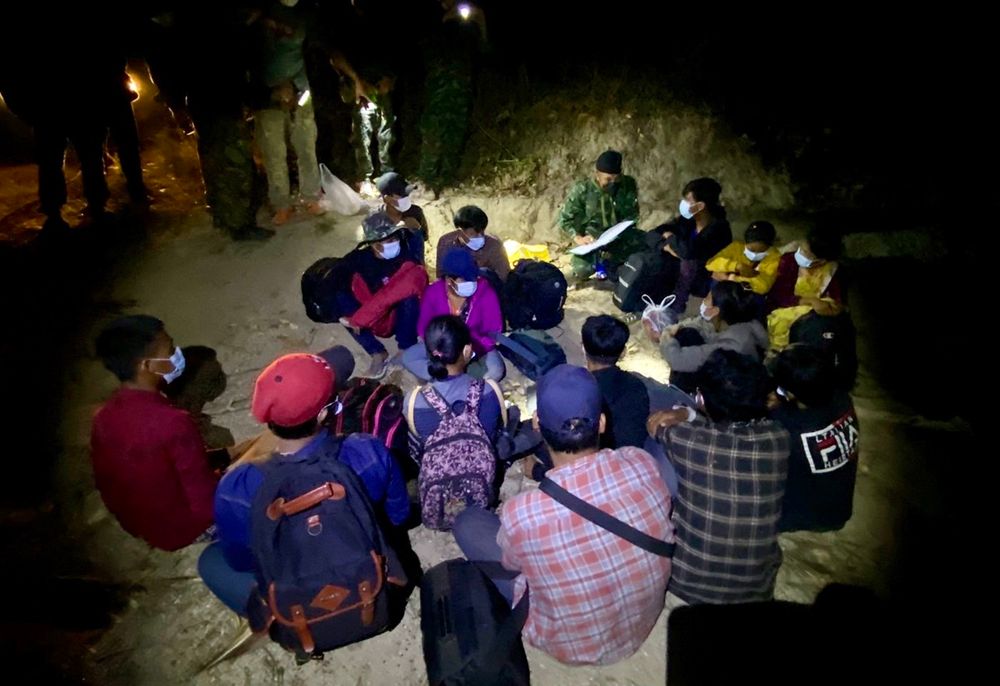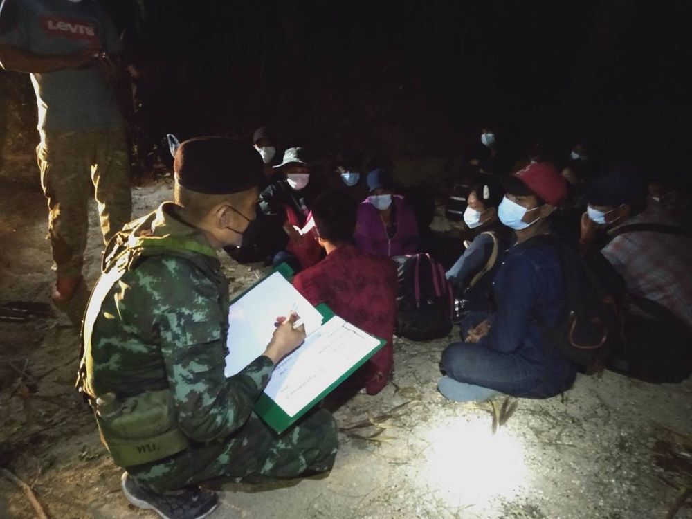 ต่อมาเวลา 20.45 น. จับกุมบุคคลต่างด้าวสัญชาติเมียนมา ลักลอบข้ามแดนโดยผิดกฎหมายจำนวน 20 คน (ช.13,ญ.7) บริเวณ บ.กองหม่องทะ ต.ไล่โว่ อ.สังขละบุรี จ.กาญจนบุรี