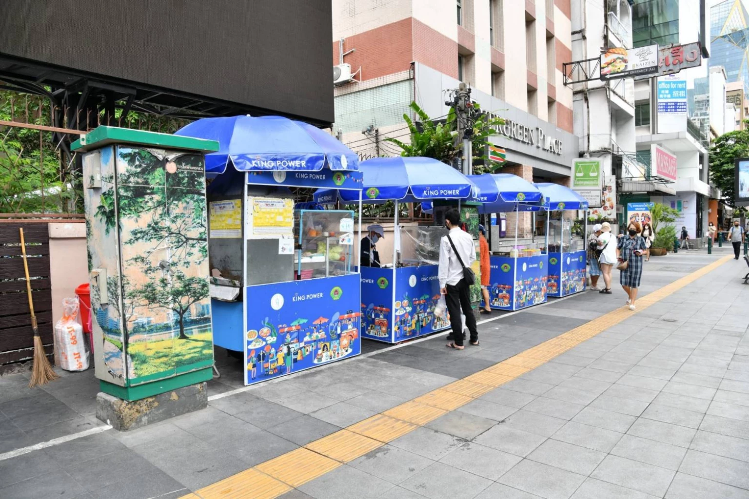 จากการลงพื้นที่พบว่าผู้ค้าจุดทบทวนให้ความร่วมมือในการตั้งวางสิ่งของเป็นระเบียบเรียบร้อย มีรูปแบบร่มและแผงค้าเป็นลักษณะเดียวกัน โดยให้คำแนะนำในเรื่องของการดูแลรักษาความสะอาดพื้นที่ การติดตั้งเต็นท์กันแดดกันฝน ไม่ให้ยื่นเกินออกมาในทางเท้า