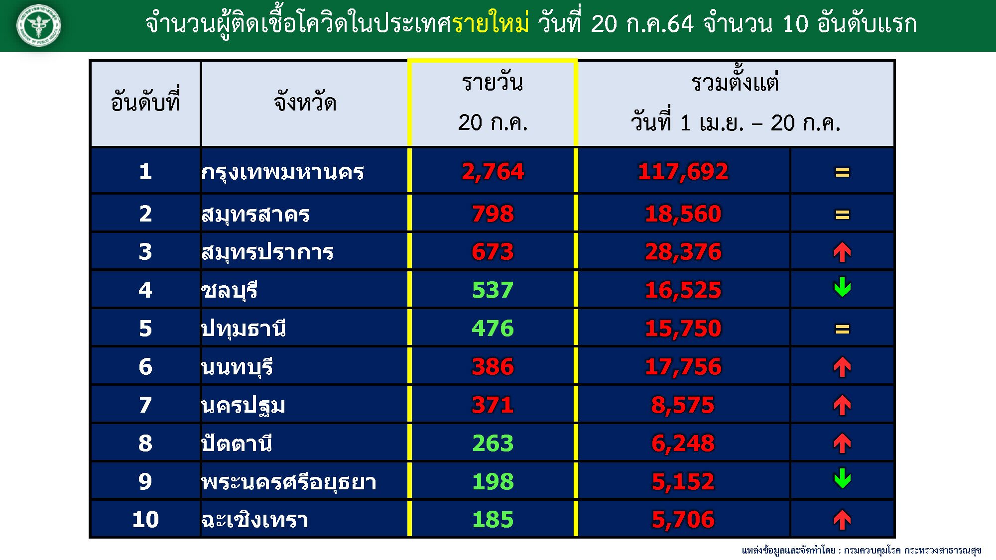 1.กรุงเทพมหานคร ติดเชื้อใหม่ 2,764 ราย, ยอดสะสม 117,692 ราย