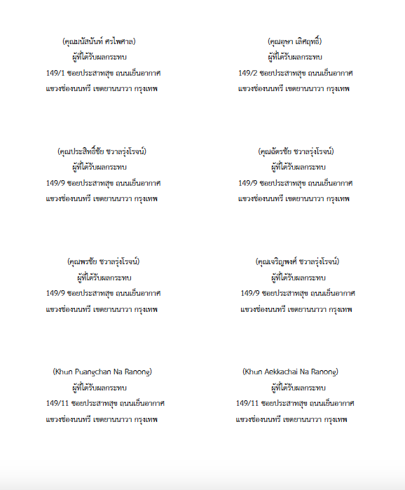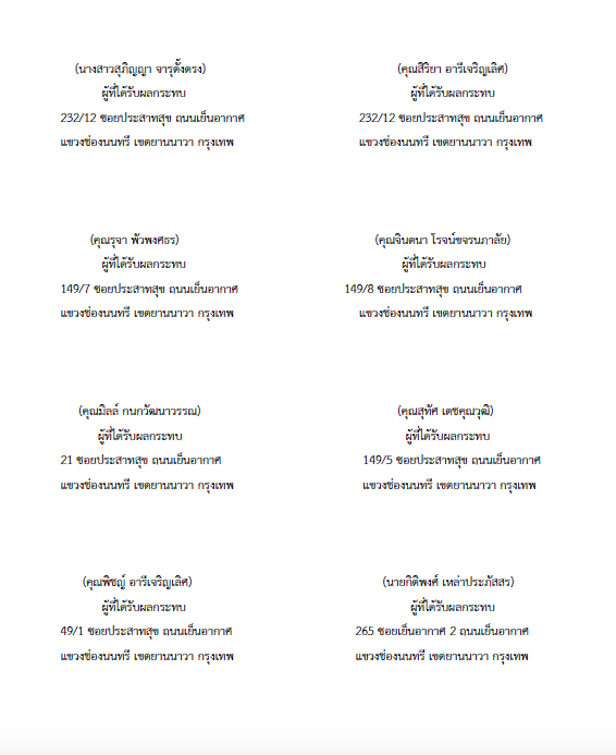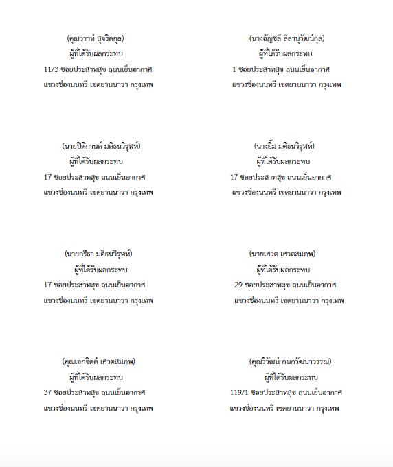 “อยากให้ผู้ว่าฯ กทม. ให้ความสำคัญกับคุณภาพชีวิตของคนกรุงเทพฯ มากกว่าการทำกำไรของบริษัทพัฒนาอสังหาริมทรัพย์ ซึ่งทางผู้ว่าฯ กทม. รับปากว่าจะตั้งคณะกรรมการตรวจสอบการทำงานของสำนักงานเขตยานนาวา คณะกรรมการพิจารณาผลกระทบสิ่งแวดล้อม รวมถึงทบทวนนโยบายการพิจารณาโครงการลักษณะนี้ในทั่วทุกพื้นที่ เพื่อไม่ให้เกิดผลกระทบกับผู้ที่เกี่ยวข้องในอนาคต”
