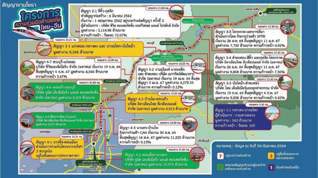 ในโครงการมีรายละเอียดสัญญางานโยธา ทั้งหมด 14 สัญญา ซึ่งปัจจุบันแบ่งเป็น 4 สถานะ คือ