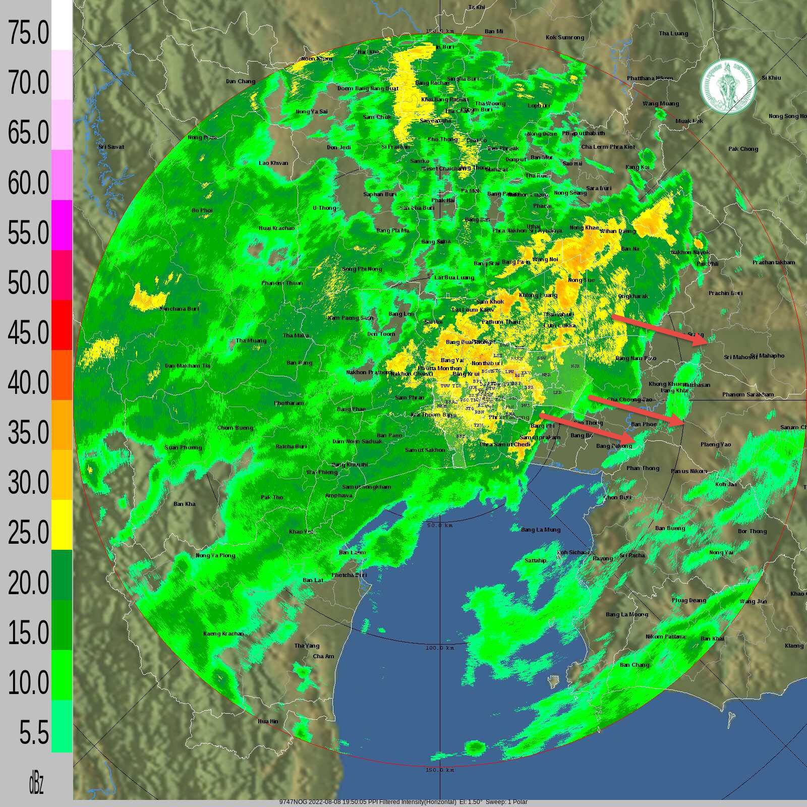 ผู้สื่อข่าวรายงานว่า สถานการณ์เรดาร์ฝน เมื่อเวลา 20.00 น. มีฝนตกเล็กน้อยปกคลุมพื้นที่กรุงเทพฯ ทั้งหมด เคลื่อนตัวทิศตะวันออกเฉียงใต้ แนวโน้มคงที่ โดยปริมาณฝนสูงสุดอยู่ที่เขตทวีวัฒนา 14.5 มิลลิเมตร