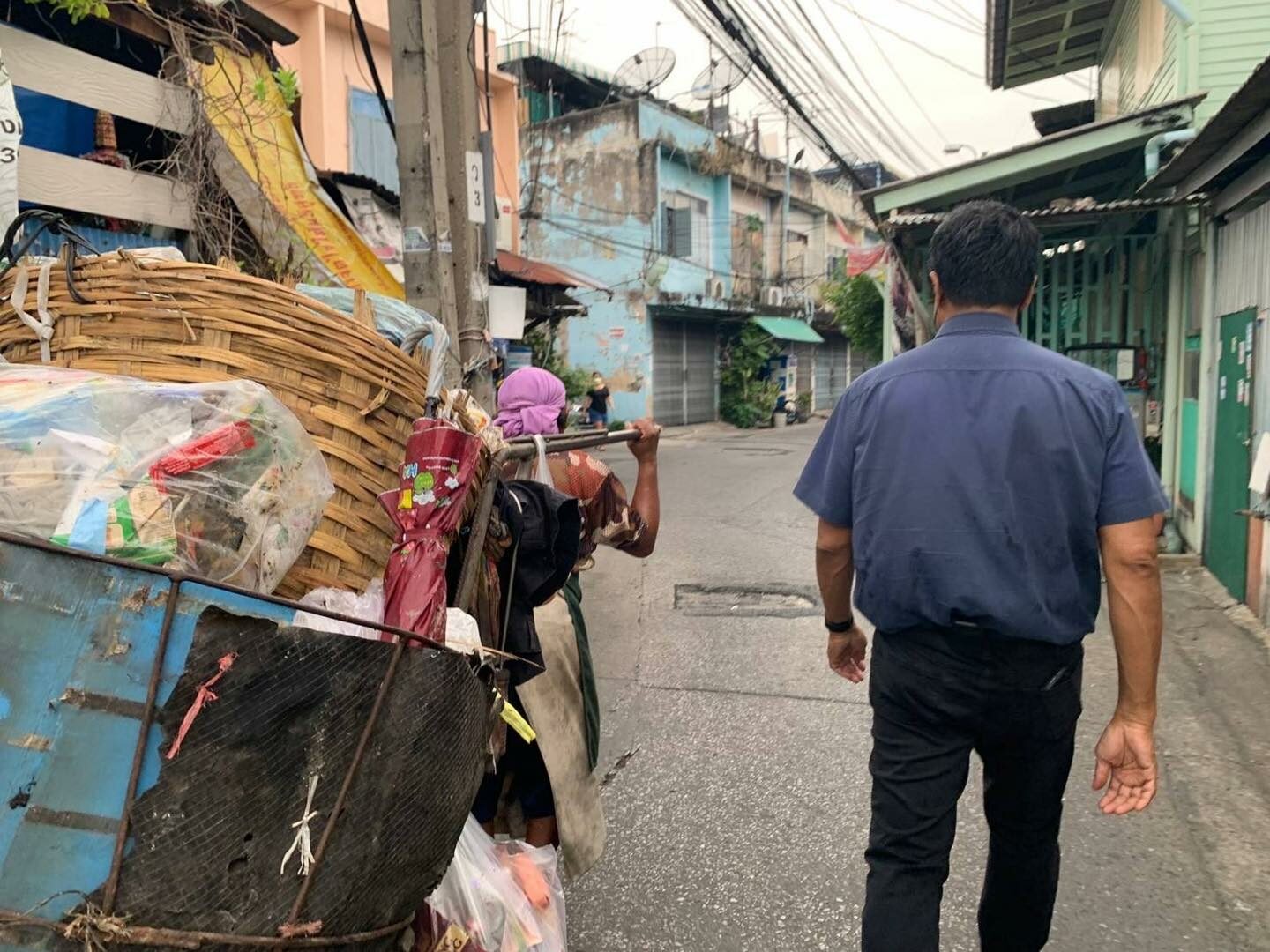 ลักษณะชุมชนบริเวณนี้ และ อีกหลายๆแห่งใน กทม. เป็นชุมชนที่รถเข้าไม่ถึง มีตรอกเล็กๆ สำหรับคนเดิน จักรยาน และ มอเตอร์ไซค์ รถขนขยะขนาดใหญ่ต้องจอดที่ปลายซอยที่รถขยะเข้าถึง แล้วส่งพี่ๆเจ้าหน้าที่ ออกไปลากขยะจากแต่ละจุดมาส่งที่รถขนขยะอีกที