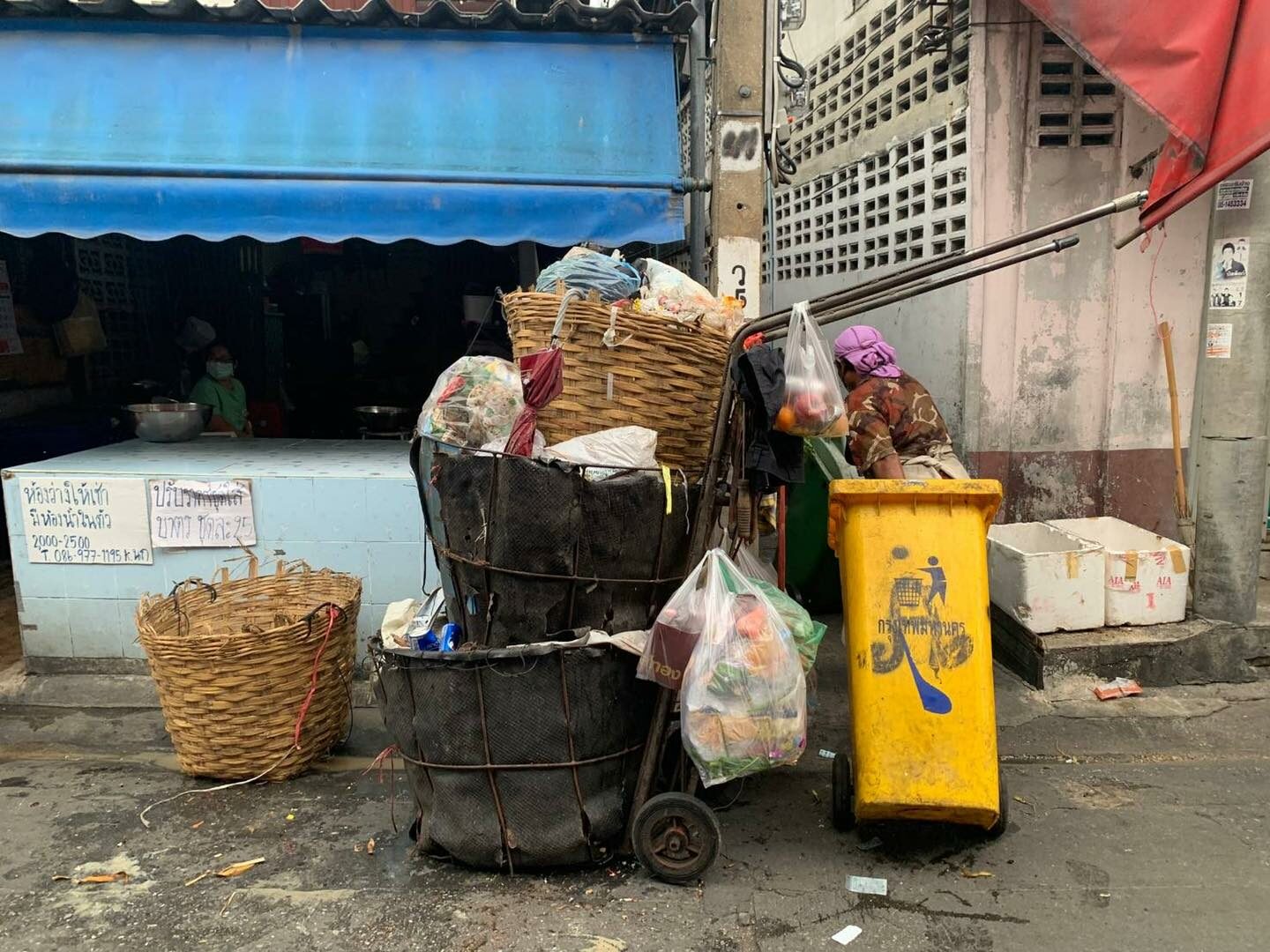 จุดที่พวกเราไปดูคือปลายซอยเจริญกรุง 91 ที่รถขยะจอด และ เป็นที่วางอุปกรณ์เข่ง รถลาก ถังขยะ ผมเดินไปกับพี่เตี้ยที่ทำหน้าที่ลากขยะบริเวณนี้มา 37 ปีแล้ว และจะเกษียณในอีกไม่กี่เดือนข้างหน้า