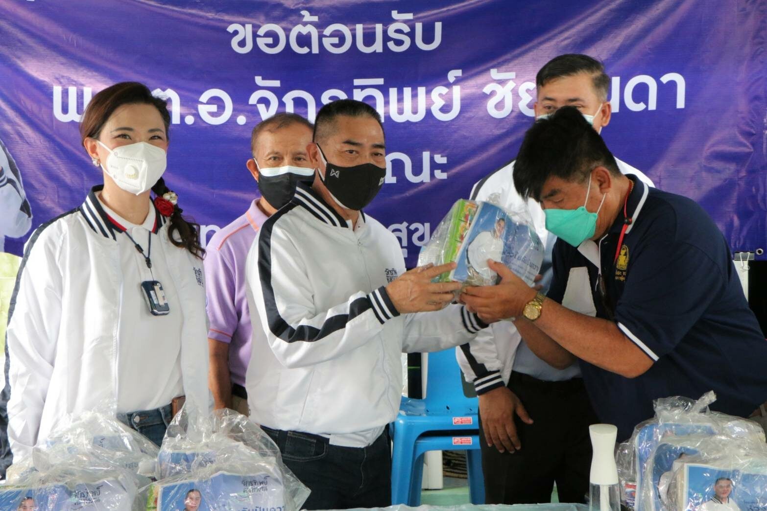 พร้อมร่วมมอบถุงยังชีพ จำนวน 200 ชุดให้กับ ผู้ป่วยติดเตียง ผู้สูงอายุ และผู้ยากจน โดยมี คุณอุบล รังสิมันตุชาติ ประธานชมรมผู้สูงอายุ ชุมชุมรามอินทราซอย 67 เป็นตัวแทนรับมอบ เพื่อนำไปมอบให้กับชาวชุมชนตามบ้านที่ไม่สามารถออกมารับมอบได้ด้วยตัวเอง หลังจากนั้นได้ร่วมเดินทางไปยังชุมชนไปรษณีย์รามอินทรา 65 เขตบางเขน เพื่อมอบถุงยังชีพให้กับพี่น้องประชาชนในชุมชุม อีกจำนวน 400 ชุด โดยมีตัวแทนมารับมอบ จำนวน 25 ท่าน นอกจากนี้ พล.ต.อ.จักรทิพย์ฯ ยังได้กล่าวทักทาย และแสดงความห่วงใย พร้อมให้กำลังใจพี่น้องประชาชนในชุมชน ผ่านทางลำโพงกระจายเสียงของชุมชนอีกด้วย