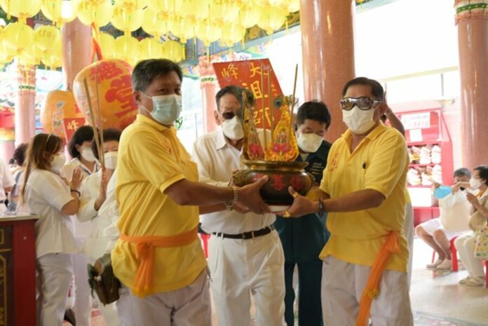วันที่ 5 ต.ค.64 นายวิเชียร เตชะไพบูลย์ ประธานกรรมการ มูลนิธิป่อเต็กตึ๊ง เป็นประธานในพิธี พร้อมด้วย ดร.สุทัศน์ เตชะวิบูลย์ รองประธานกรรมการ นายสัก กอแสงเรือง รองประธานกรรมการ คณะกรรมการ และผู้ช่วยกรรมการมูลนิธิฯ ผู้บริหาร ศิษยานุศิษย์และสาธุชน ร่วมในพิธีอัญเชิญกิ๊วอ๊วงฮุกโจว (เทพเจ้า 9 องค์ หรือนัยหนึ่ง คือ ดาวพระเคราะห์ทั้ง 9 ดวง) เปิดมณฑลพิธีงานเทศกาลกินเจ ประจำปี 2564 โดยคณะสงฆ์อนัมนิกาย วัดอุทัยราชบำรุง ณ ภายในศาลเจ้าไต้ฮงกง มูลนิธิป่อเต็กตึ๊ง พลับพลาไชย กรุงเทพฯ