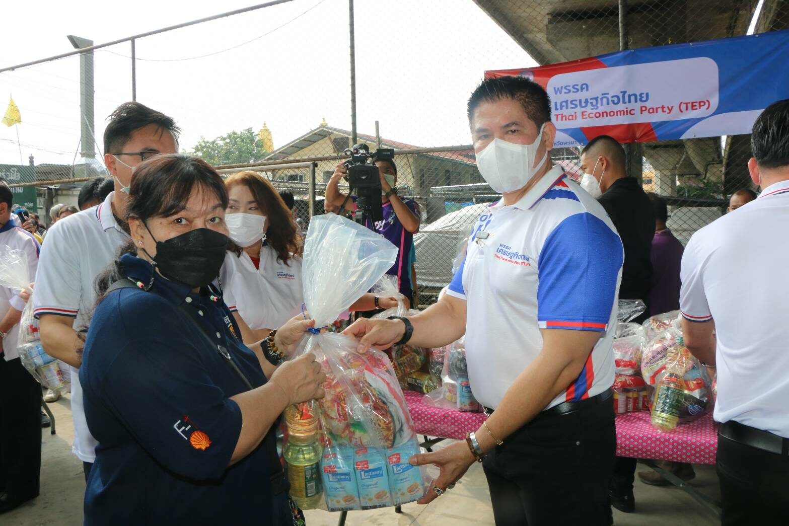 เมื่อเวลา 10.00 น. วันที่ 11 มีนาคม ณ บริเวณลานกีฬาชุมชนดอนกุศลร่วมใจ ถนนเจริญราษฎร์ เขตสาทร กรุงเทพฯ ร.อ.ธรรมนัส พรหมเผ่า ส.ส.พะเยาเขต1 พรรคเศรษฐกิจไทย และนางสาวธนพร ศรีวิราช ภริยา ได้ลงพื้นที่พบปะเยี่ยมเยือนประชาชน พร้อมมอบถุงยังชีพ จำนวน 500 ชุด เพื่อบรรเทาความเดือดร้อนจากผลกระทบโควิด-19 โดยมีคณะส.ส.พรรคเศรษฐกิจไทย อาทิ นายบุญสิงห์ วรินทร์รักษ์ ส.ส.บัญชีรายชื่อ ,นายจีรเดช ศรีวิราช ส.ส.เขต3จ.พะเยา , ดร.จอมขวัญ กลับบ้านเกาะ ส.ส.เขต 3 จ.สมุทรสาคร,นายเกษม สุภรานนท์ ส.ส.เขต 1 จ.นครราชสีา ,นายสมศักดิ์ คุณเงิน ส.ส.เขต 7 จ.ขอนแก่น เป็นต้น มาคอยให้การต้อนรับ ซึ่งบรรยากาศเป็นไปด้วยความเรียบร้อยภายใต้มาตรการคัดกรองป้องกันโควิด-19เคร่งครัด