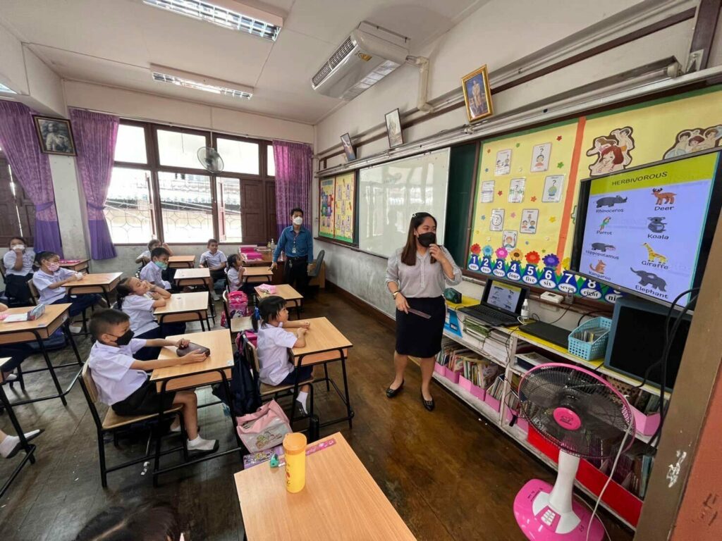นอกจากนี้ ยังใช้ภาษาอังกฤษสอน 5 วิชา คือ คณิตศาสตร์ ศิลปะ วิทยาศาสตร์ ภาษาอังกฤษ และสังคมศึกษาขอบคุณนางสุธาศินี และครูทุกท่าน ก่อนกลับแวะไปชมศาลาโบราณที่จำลองมาตั้งแต่ตังโรงเรียนมาสมัย ร. 5 ลูกหลานเหล่านี้ คือ อนาคตของชาติที่กำลังถูกหล่อหลอมมาอย่างมีคุณภาพ และจะต้องได้รับการดูแลจาก กทม.ให้ดียิ่งขึ้นตามนโยบายของ นายชัชชาติ ตนจะทยอยไปเยี่ยมไกล-ใกล้ ไปได้หมดตามคำสั่งของประชาชน