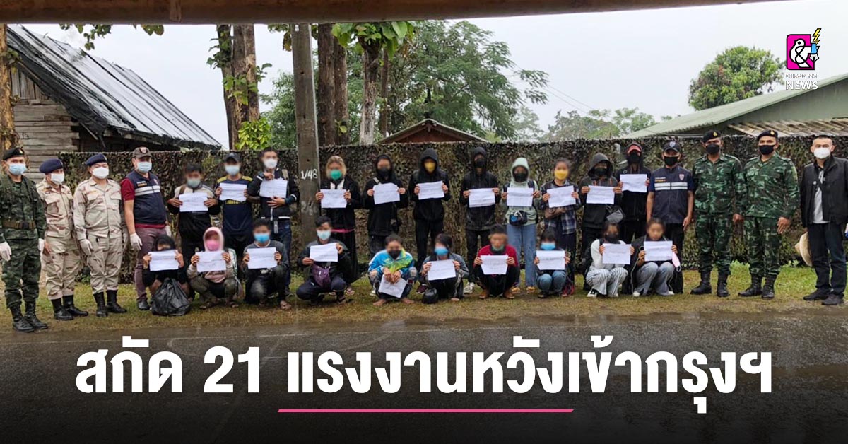 โดยสามารถจับกุมแรงต่างด้าว สัญชาติเมียนมา จำนวน 21 คน ชาย 15 คน และหญิง 6 คน ลักลอบข้ามาในราชอาณาจักรโดยผิดกฎหมาย