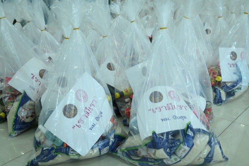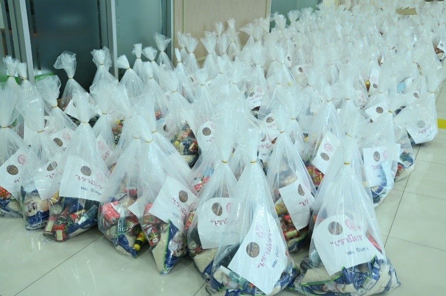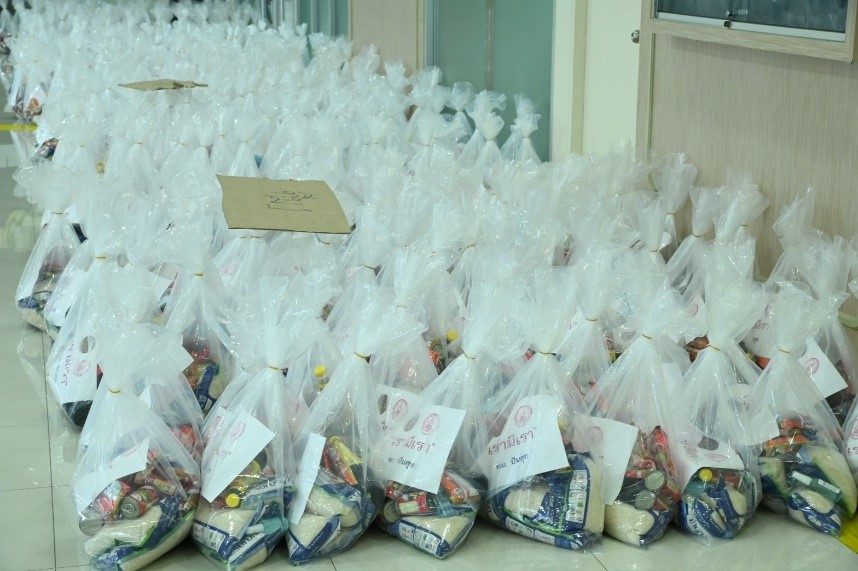 ของที่ได้รับบริจาคจำนวนมากทยอยแพ็คใส่ถุงยังชีพ เพื่อให้อาสาสมัคร พม. นำไปให้กับกลุ่มเปราะบางทั่วกรุงเทพฯ