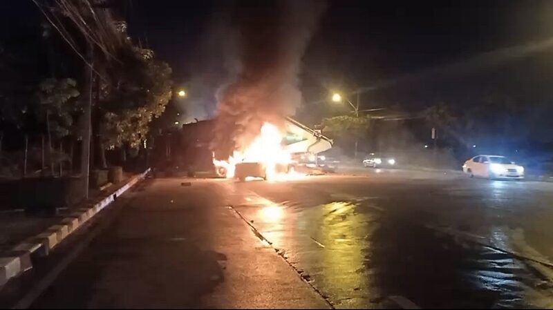 สลด แท็กซี่ พุ่งชนรถบรรทุก แก๊สระเบิด ไฟลุกพรึ่บเผาวอด คลอกคนขับเสียชีวิตคาที่ บนถนนในพื้นที่เขตประเวศ เจ้าหน้าที่เร่งดับเพลิงวุ่น