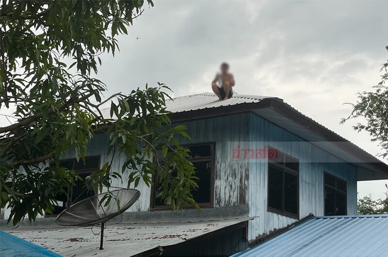 หนุ่มกันทรลักษ์ ป่วยจิตเวช ถูกภรรยาพามาส่งรักษาต่อที่บ้านเกิด ก่อนกลับไปทำงานที่กรุงเทพฯ เกิดน้อยใจปีนหลังไม่ยอมลง นั่งตากแดดตากฝน 27 ชม.แล้ว