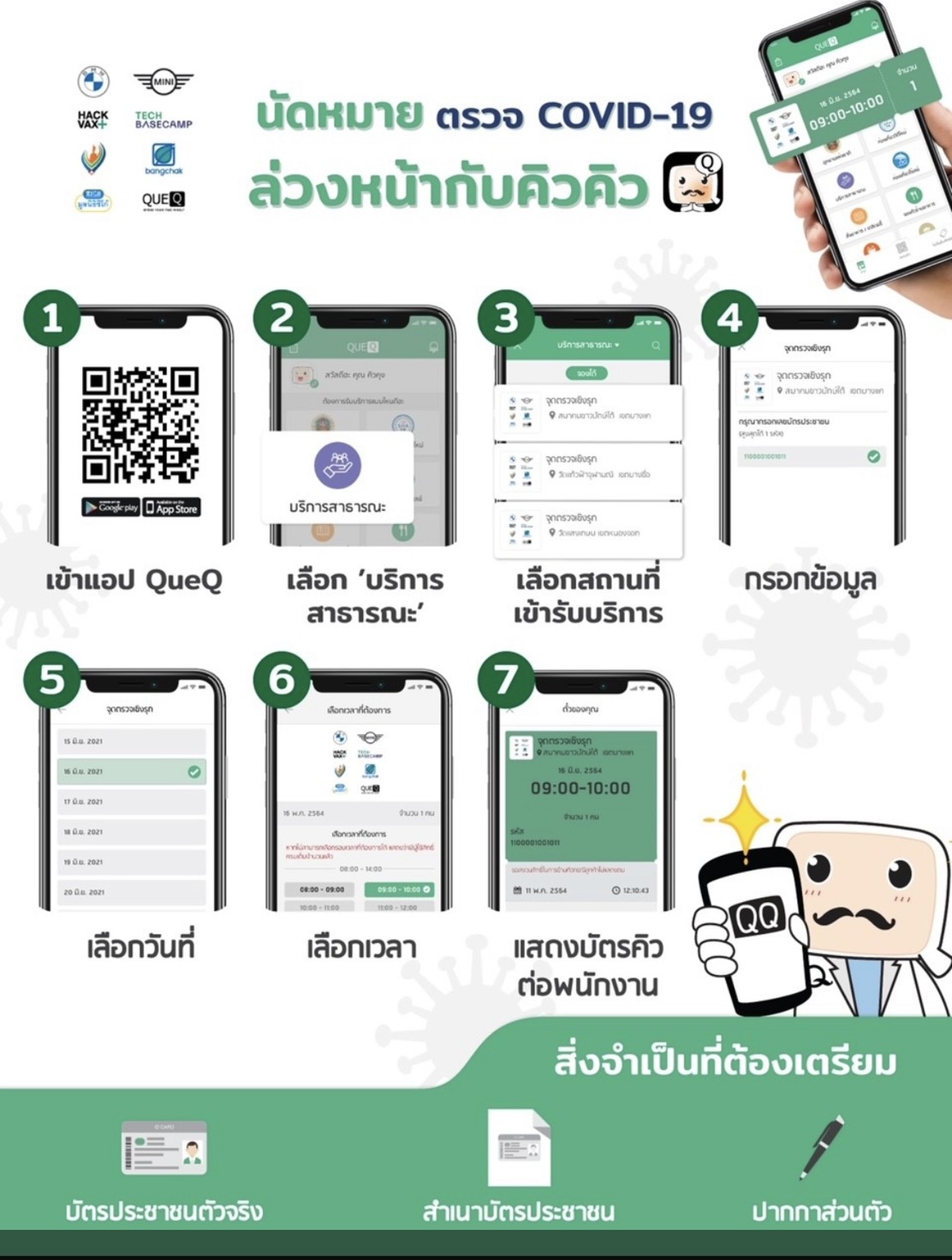 ภาคเอกชน เปิดจุดตรวจหาเชื้อโควิด-19 ฟรี แก่ประชาชนในกรุงเทพฯ ระหว่างวันที่ 4-9 ส.ค.นี้ จองผ่านแอปฯ QueQ