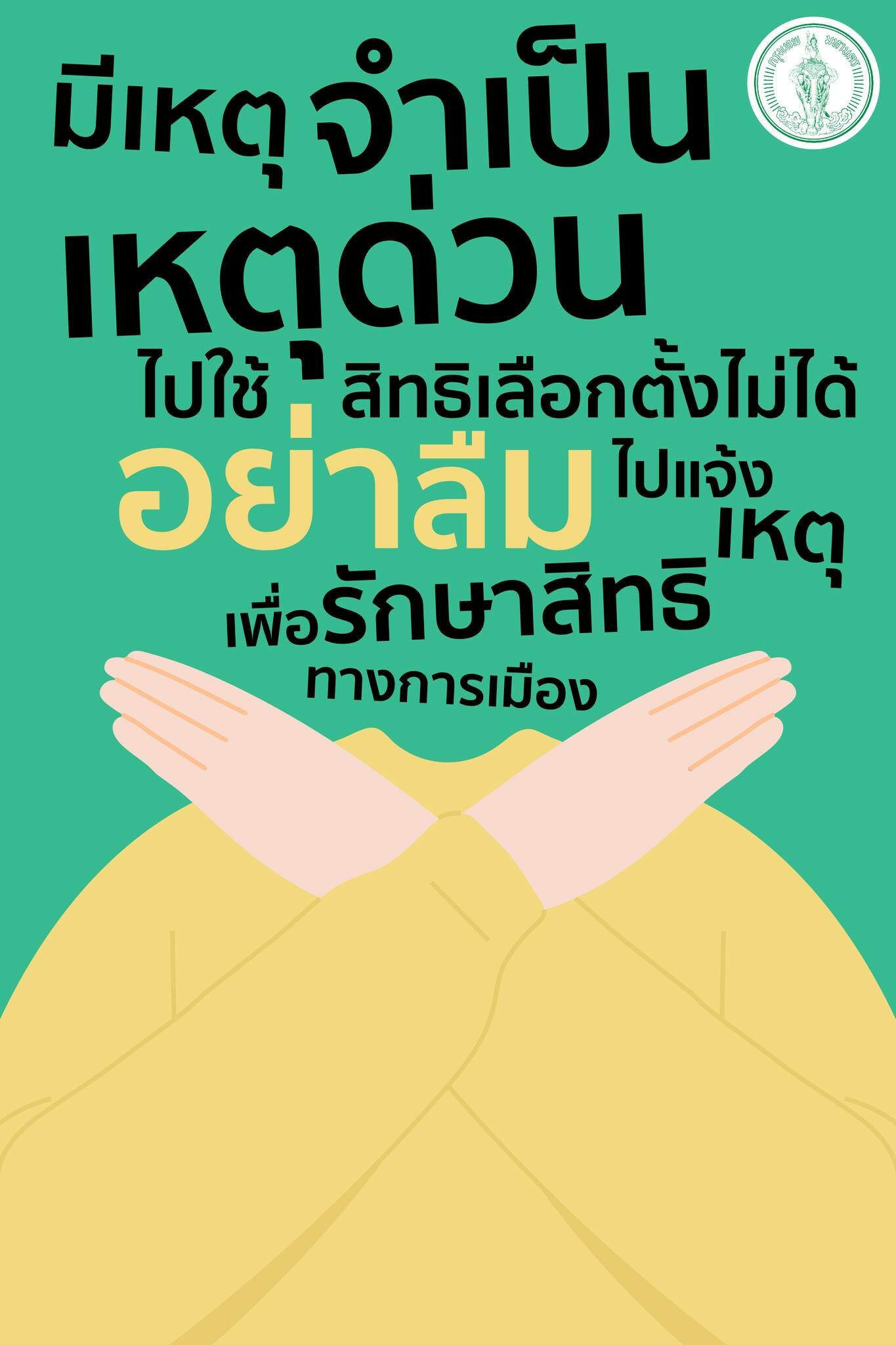 กทม.เปิดขั้นตอนแจ้งเหตุหากไม่สามารถไปเลือกตั้งผู้ว่ากทม.-ส.ก. 22 พ.ค. เพื่อรักษาสิทธิทางการเมือง