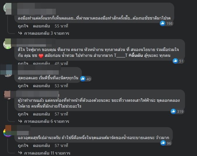 หลังจากโพสต์ไปไม่นาน มีชาวเน็ตเข้ามาแสดงความคิดเห็นจำนวนมาก เช่น “ระบายไวจริงครับ ปกติมี 1-2 ชม. นี่แปปเดียวลงหมดแล้ว” , “อยากให้มีจิตสำนึกร่วมกันเรื่องทิ้งขยะด้วยครับ มันคือสาเหตุหลักของน้ำท่วมเลยนะ” , “ลงมือทำแค่ครั้งแรกก็เห็นผลเลย…ที่ผ่านมาเคยลงมือทำสักครั้งมั๊ย…ต้องรอชัชชาติมาโปรด“, “ดีใจ ใจฟูมาก ขอบคุณ ทีมงาน คนงาน หัวหน้างาน ทุกภาคส่วน ที่ สนองนโยบาย ร่วมมือร่วมใจ กับ คุณ ชช สมัยก่อน น้ำท่วม ไปทำงาน ลำบากมาก T_____T #ตื้นตัน สู้ๆนะคะ ทุกคน“, “สุดยอดเลย เริ่มดีขึ้นทีละนิดๆทุกวัน“, “แถวอุดมสุขรึเปล่านะครับ ถ้าใช่นี่คือหนึ่งในจุดแลนด์มาร์คของน้ำรอระบายเลยนะ ว้าวมาก“, “ผู้ว่าทำงานแล้ว แต่คนท้องที่ทำหน้าที่ตัวเองด้วยนะคะ ขยะที่วางตรงเสาไฟฟ้าน่ะ ขุดลอกคลองให้ตาย คนพื้นที่มักง่ายก็ไม่ช่วยอะไร“, “สรุปน้ำไม่ได้รอระบายหรอก น้ำรอคนมาทำ!!!” เป็นต้น