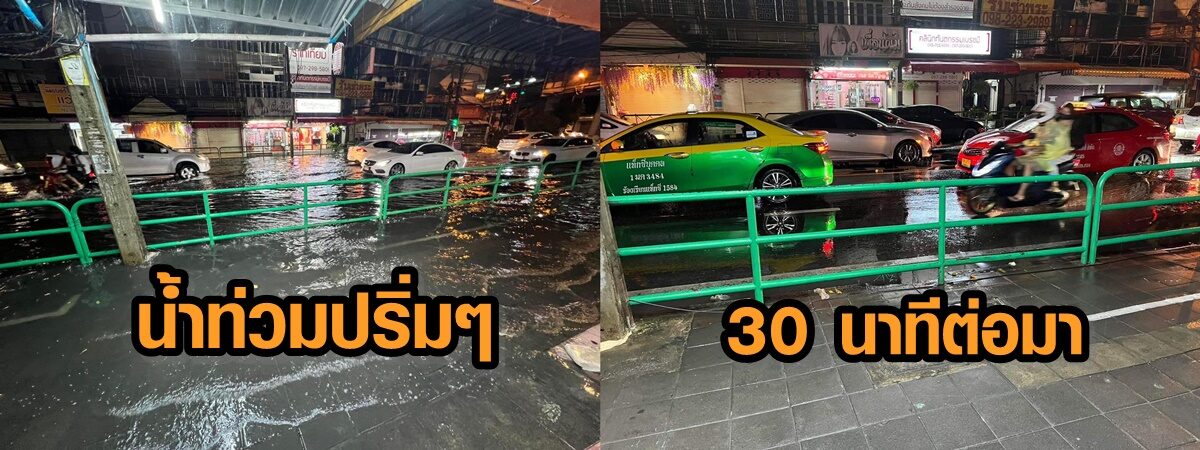 ต่อมาทางเพจ อัพเดตเพิ่มเติมว่า “อัพเดทเพิ่มเติมจากเจ้าของภาพ ต่อจากภาพโพสตะกี้ ท่วมปริ่มๆ เจ้าของภาพบอกว่าปรกติพื้นท่นี้ ฝนตกนิดหน่อยท่วมถึงแข้ง อันนี้น้อยลง ภาพต่อมา คือสามสิบนาทีต่อมา แห้งสนิทครับ น้ำระบายไวมาก”