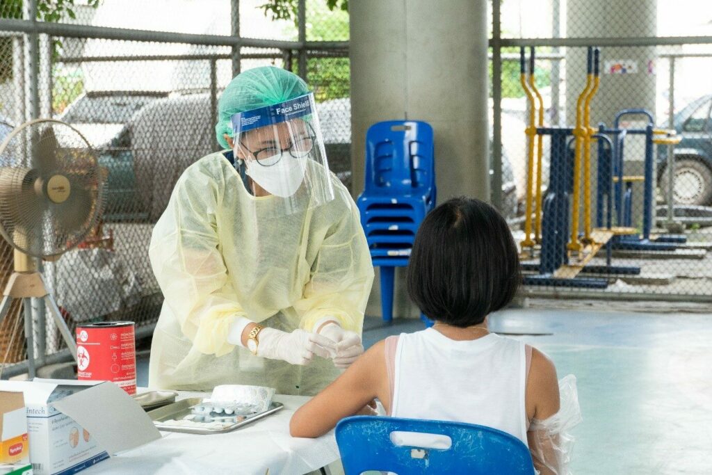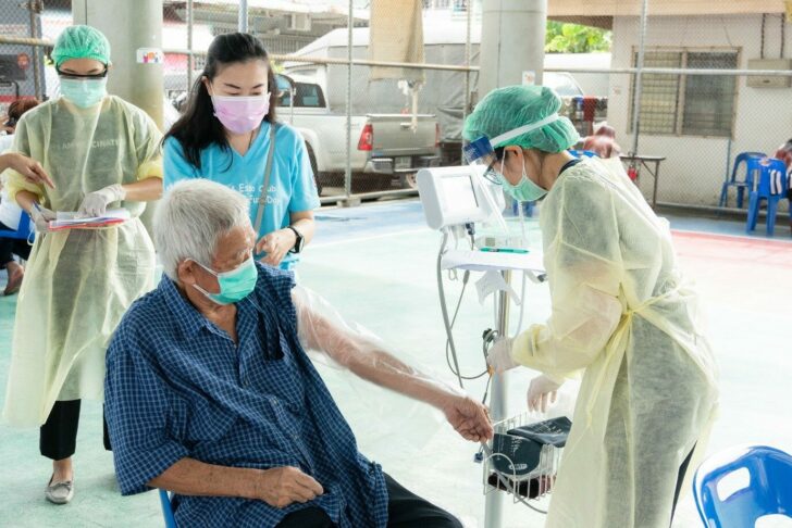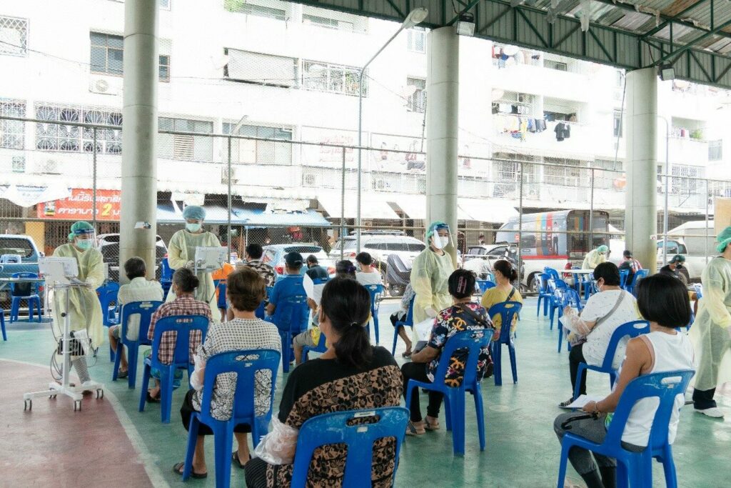 กรุงเทพฯ – โรงพยาบาลเมดพาร์ค จัดหน่วยบริการเคลื่อนที่ฉีดวัคซีนป้องกันโควิด19 ให้แก่ผู้สูงอายุและกลุ่มเปราะบางในชุมชนเทพประทาน เขตคลองเตย เมื่อวันที่ 25 สิงหาคม 2564 เพื่อสนับสนุนนโยบายภาครัฐ ในการลดความเสี่ยงการติดเชื้อและเกิดอาการรุนแรง