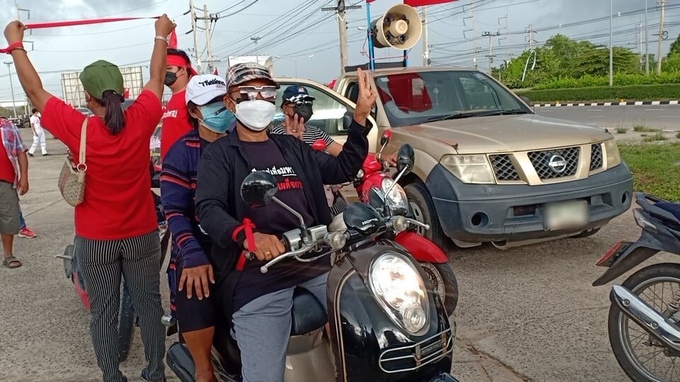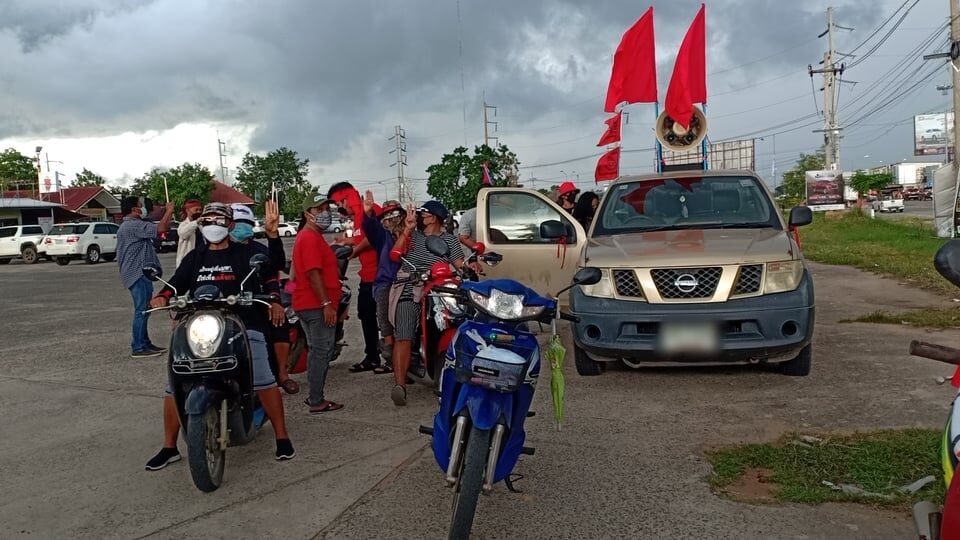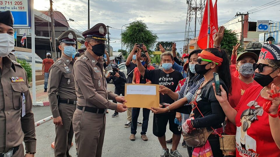 ‘เสื้อแดงสารคาม’ คาร์ม็อบคู่ขนาน กทม. มุ่งหน้าโรงพัก ยื่นหนังสือผู้กำกับ ประณาม จนท.ใช้ความรุนแรงสลายชุมนุม-ขอให้ยืนเคียงข้างประชาชน
