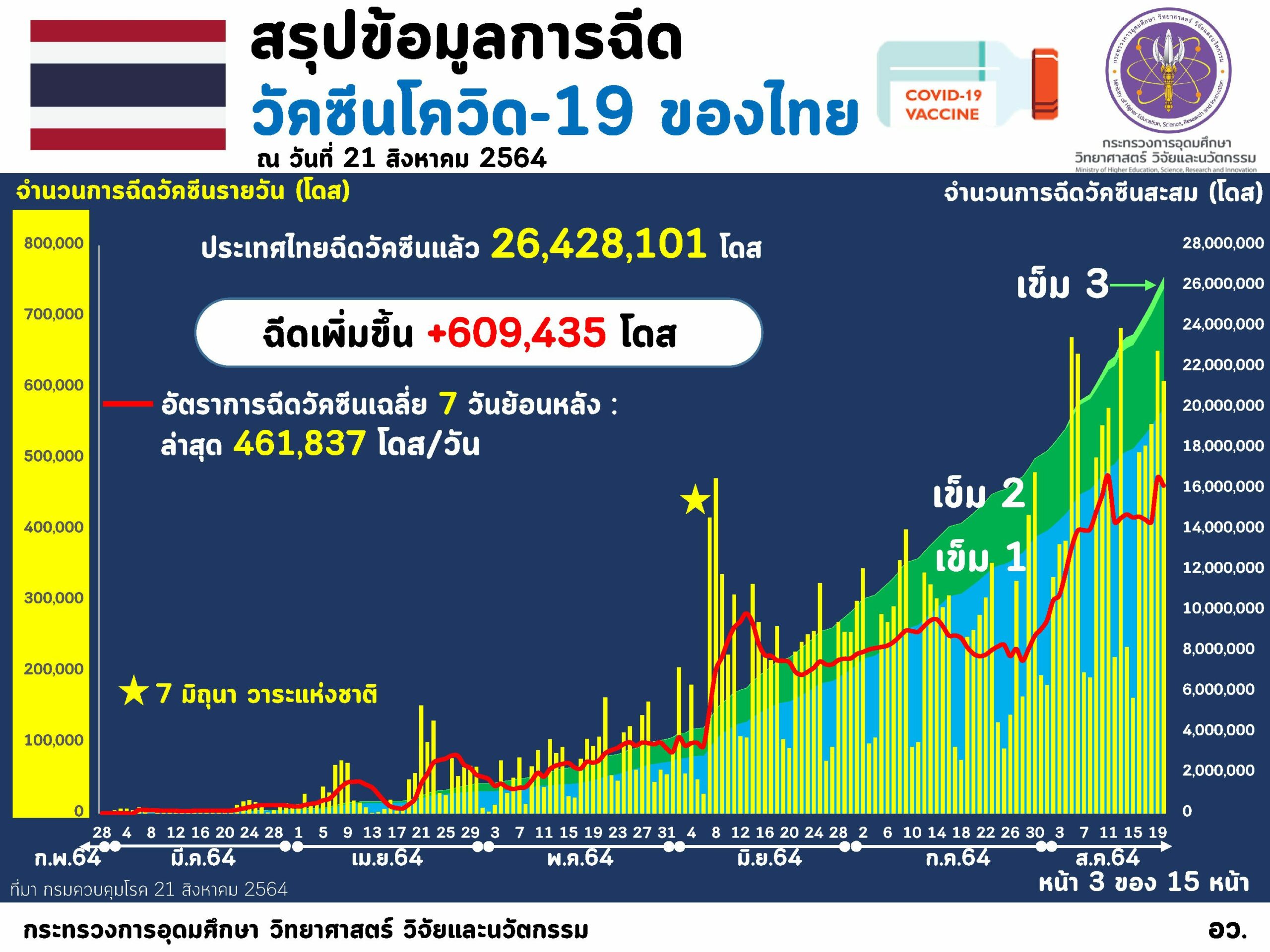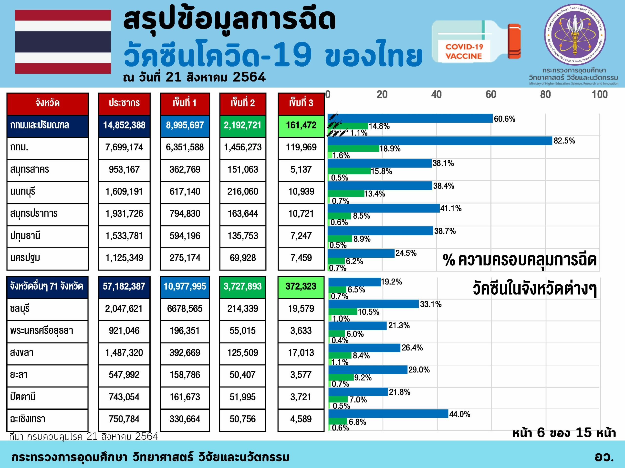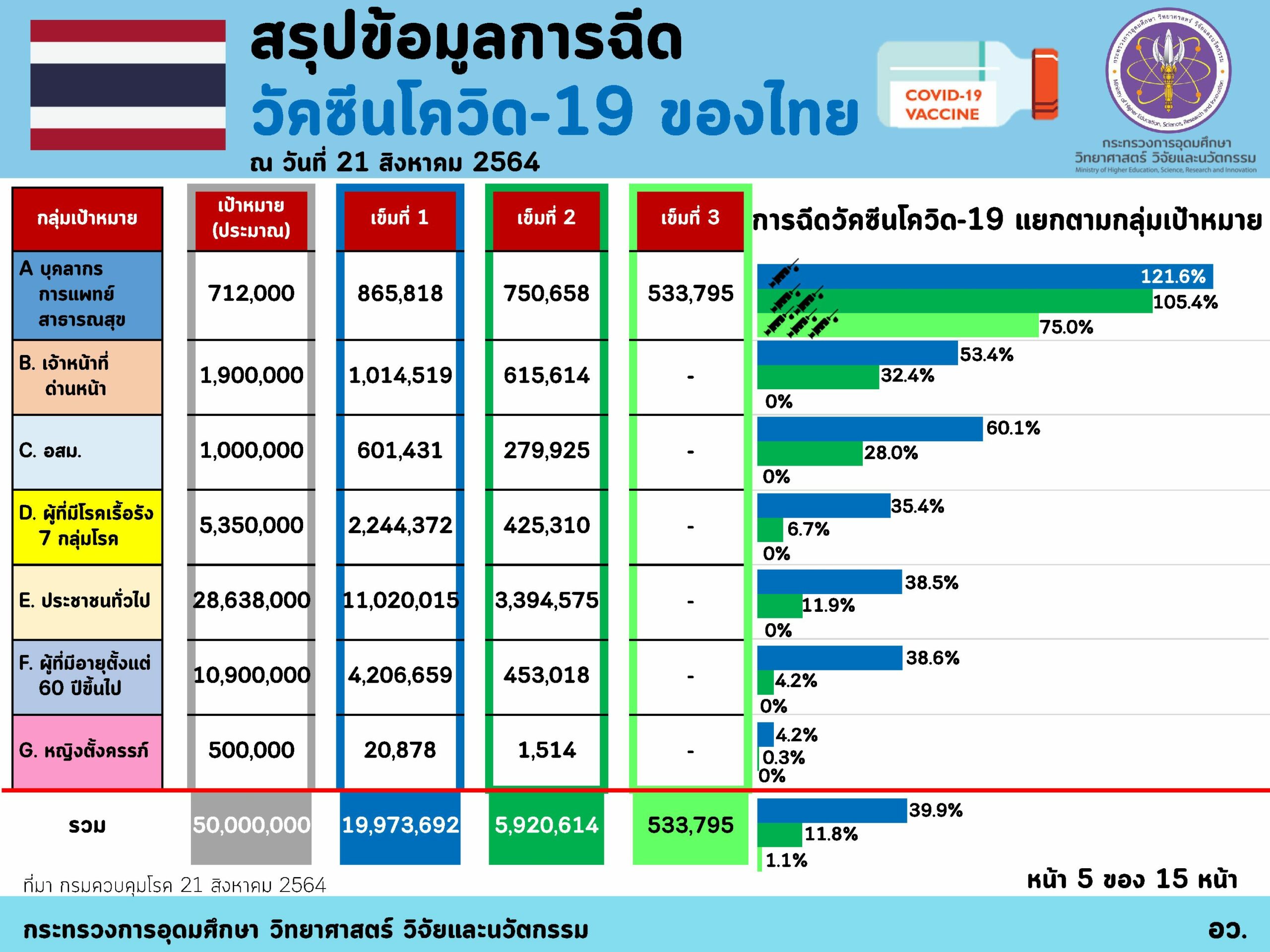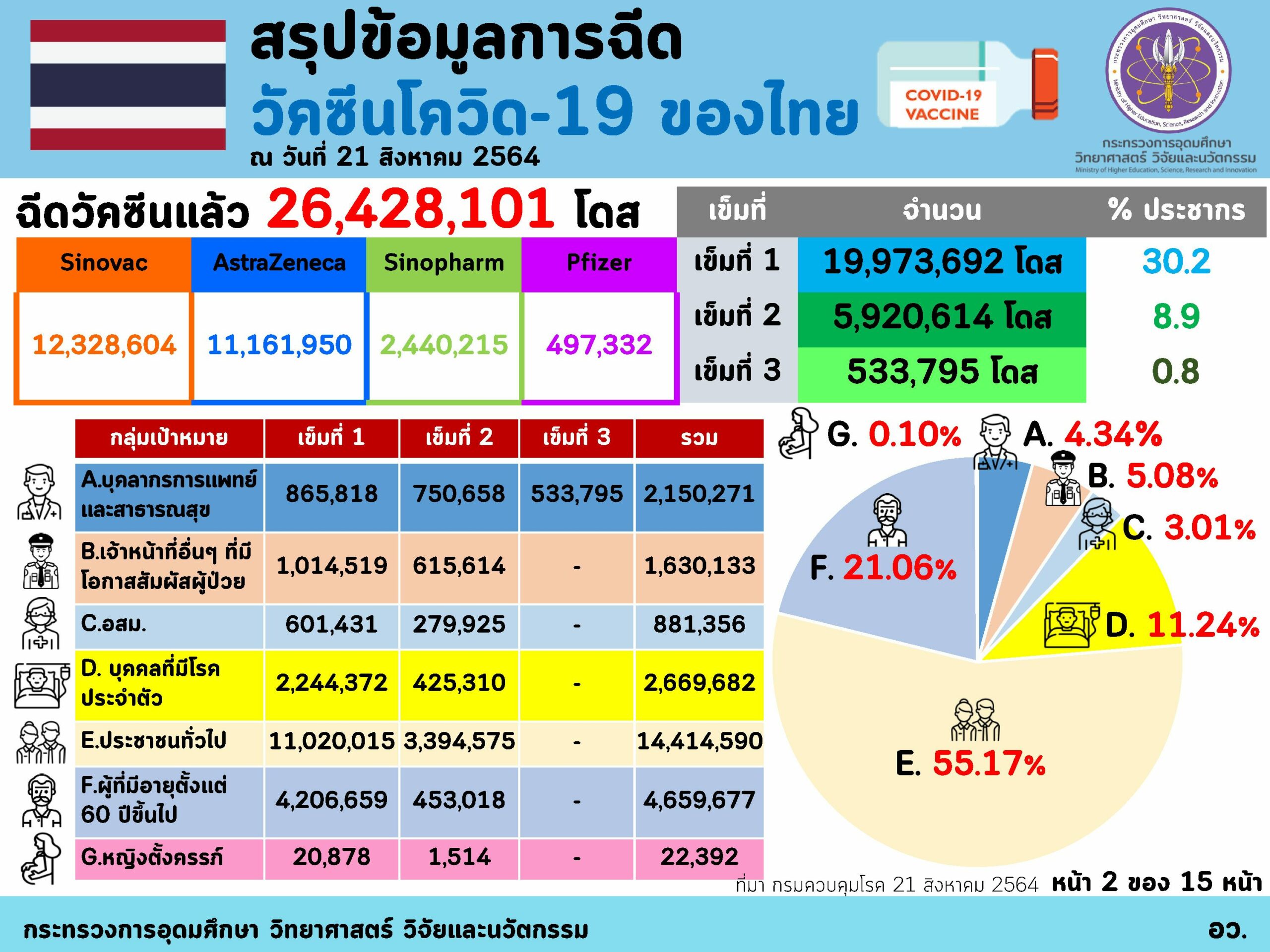 1. ข้อมูลการฉีดวัคซีนล่าสุดของประเทศไทย ณ วันที่ 21 สิงหาคม 2564